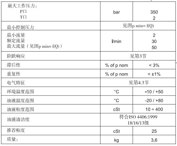 3.该阀通过的压力可连续调整,与电磁铁的参考信号成正比。