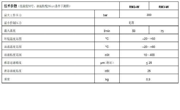 2.该阀分为2种规格:RM2-W为直动式,最大流量为50l/min;RM3-W为先导式,最大流量为75l/min